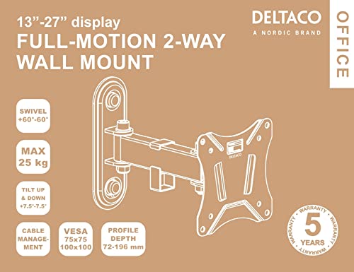Deltaco Supporto da parete per monitor da 13 a 27 pollici, piatto e curvo, monitor fino a max. 25 kg, standard VESA 75 x 75 mm fino a 100 x 100 mm, nero
