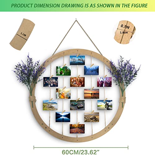 Deluisho Portafoto da Parete, Portafoto da Parete Multiplo Cornice per Foto Rotonda Grande in Legno Collage 50cm Cornice per Foto da Appendere con Eucalipto e lavanda Decorazione da Parete