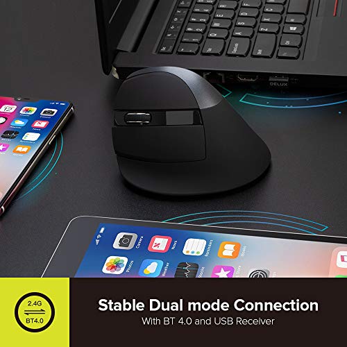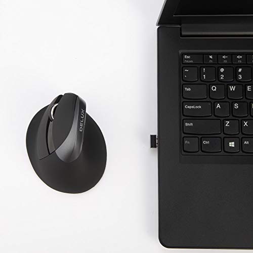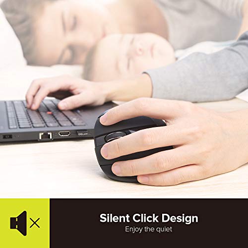 DeLUX Mouse Verticale Wireless, Mouse Ergonomico per Mancini, USB, 2,4GHz, Bluetooth, 800/1200/1600/2400/4000DPI, 6 Pulsanti, Ricaricabile, per PC/Computer/Portatile/Mac (Nero)