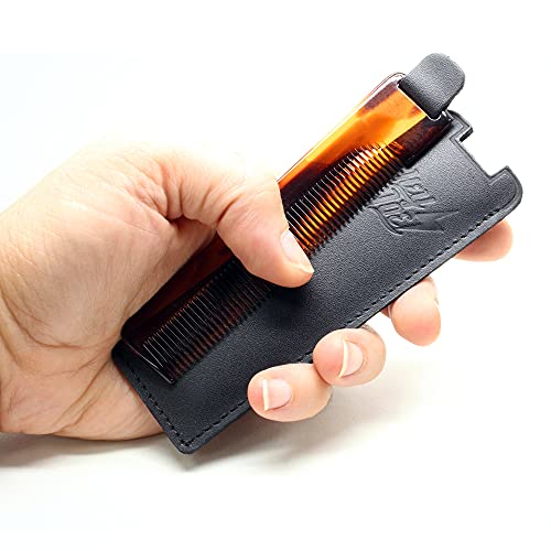 Pocket Comb 123 x 25 x 4 mm | Custodia in pelle 125 x 27 x 5 mm