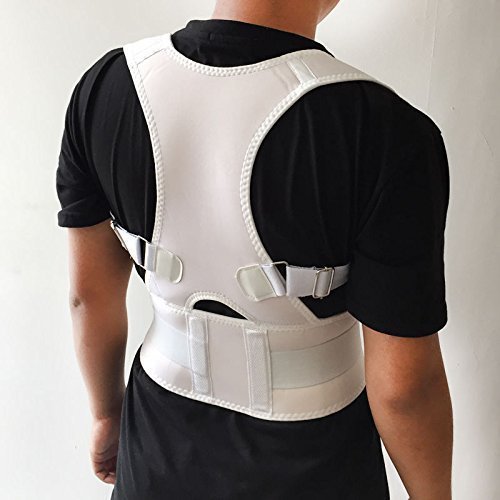 Deluxe Interamente Regolabile Schiena Tutore per Postura Correzione e Dolore Dorsale Supporto 3 Colori Varie Dimensioni Fornito by Corpo e Base - Bianco, M
