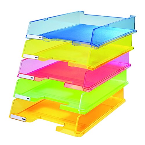 Han Deluxe - Vassoio portadocumenti a 3 livelli impilabili, 254 x 65 x 346 mm, formato C4, con etichette, colore: trasparente