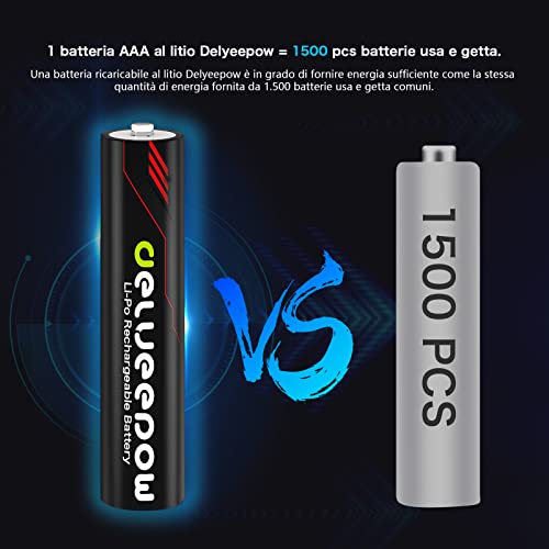 Delyeepow Batteria Ricaricabile AAA ai Polimeri di litio 1.5V 1200mWh, Pile Ricaricabili AAA ad Alta capacità da 1500 cicli, Confezione da 4
