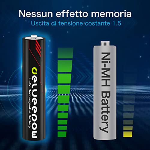 【Batteria ricaricabile ad alta capacità AAA】Pacchetto con 4 pezzi 1.5V uscita costante Delyeepow 1200mWh AAA pile al litio ricaricabili (può essere caricato solo da Deleepow Lithium Charger)