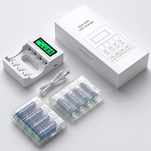 Delyeepow Pile Ricaricabili 4 Pezzi AA 3300mAh + 4 batterie AAA 1100mAh, Caricabatterie a 4 Slot per Pile Ricaricabili AA e AAA NiMH
