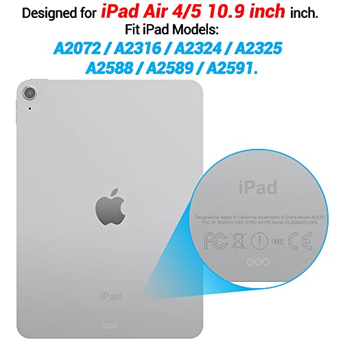 Progettato per iPad Air 4/5 10,9 pollici.NON compatibile con iPad Air mini, iPad Pro.Adatto ai modelli di iPad: A2072/A2316/A2324/A2325/A2588/A2589/A2591.Si prega di controllare la parte inferiore dell'iPad per trovare il numero del modello