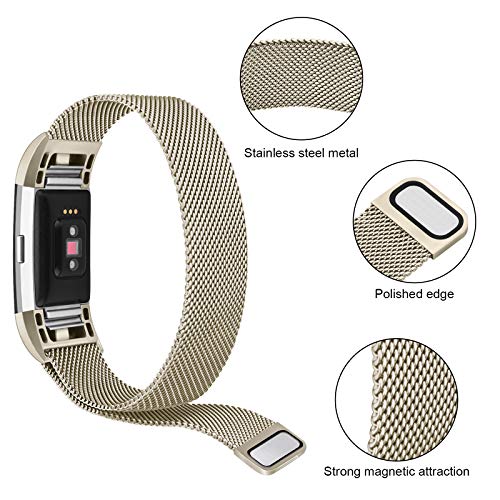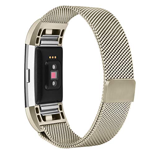 Demark Compatibile con cinturino Fitbit Charge 2, cinturino in rete metallica in acciaio inossidabile, compatibile con Fitbit Charge 2, uomo donna Small Large (Champgne, L)