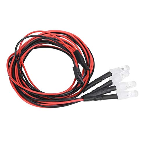 Demeras 4PCS RC Headlight RC Lampeggiante Kit Sistema di Illuminazione da 5 mm per 1/10 Model Car Truck(13# White Light + Red Light)