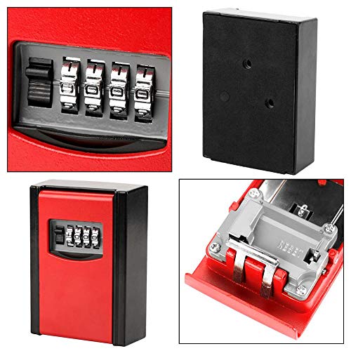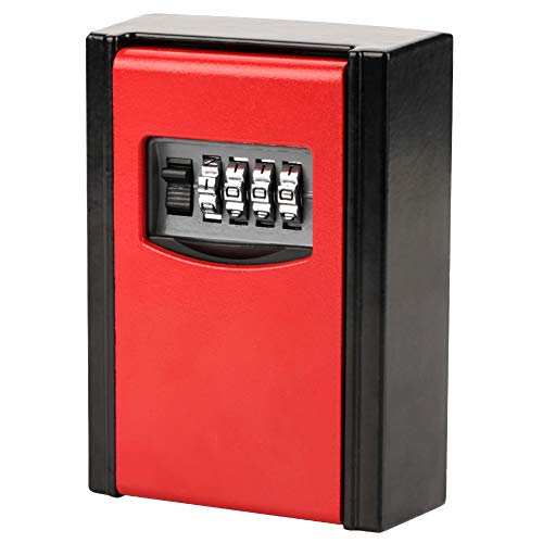 Demeras Cassetta di Sicurezza per Chiavi, Cassetta di Sicurezza per Chiavi Combinazione di Codici innumerevoli antifurto per Banca per la casa(Rosso)