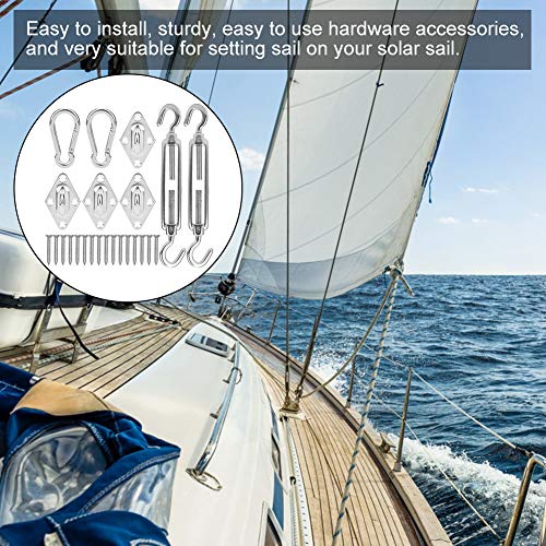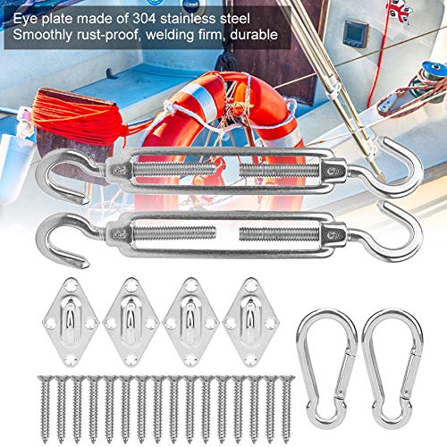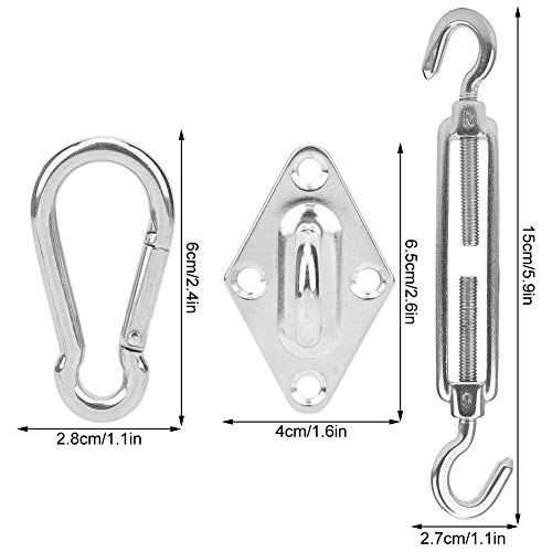 【ROBUSTO E DUREVOLE】 La fibbia in acciaio inossidabile è realizzata in acciaio inossidabile, leggera, robusta e durevole, sicura da usare, resistente e non soggetta alla ruggine.Kit hardware robusto per l'installazione di tende da sole rettangolari e quadrate.