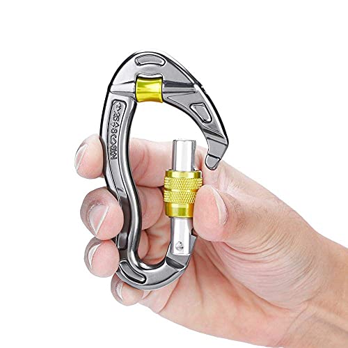 Demeras Moschettone da Arrampicata Gancio Moschettone con bloccaggio Automatico in Alluminio 25KN per amache Altalena Yoga Attrezzatura di Salvataggio per Alpinismo(Giallo)