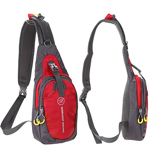 Demiawaking Borsa del Petto Impermeabile Zaino della Spalla per Sport all'aperto/Viaggio/Ciclismo/Corsa/Arrampicata (rosso)
