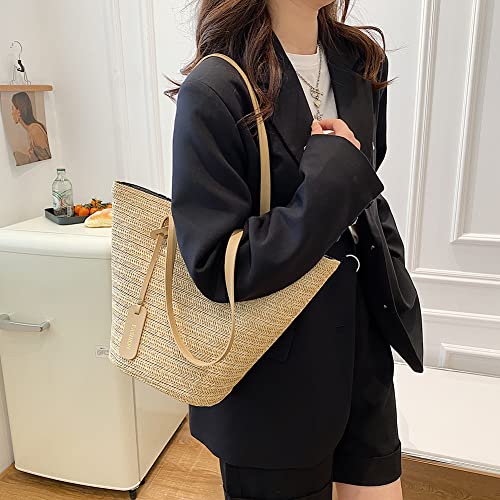 Demiawaking Borse in Paglia Intrecciata Borsa a Tracolla in Paglia Grande alla Moda Borsa da Spiaggia Paglia Estiva Borsa Paglia Mare Borsa Tote Donna Borsa da Shopping (Cachi)