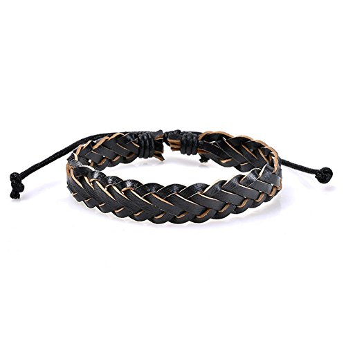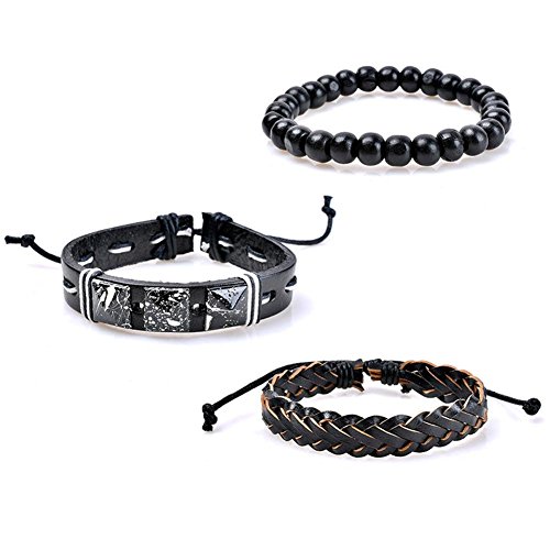 Demiawaking Bracciale da Uomo Multistrato Regolabile Bracciale Intrecciato a Mano di Moda Braccialetto Casuale in PU con Perline di Legno (Stile 7)