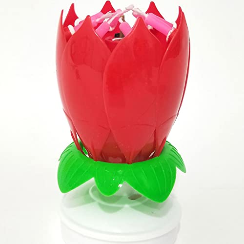 Demiawaking Candela a Forma di Fiore Musicale Candele per Torta Particolari Candela Musicale Fiore di Loto Rotante Topper per Torta Decorazione per Torta di Compleanno (Rosso)
