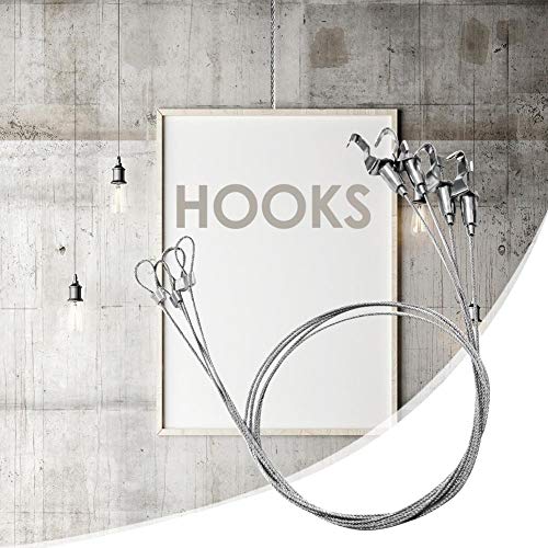 Demiawaking Cavi a Sospensione Filo da Appendere in Acciaio Inox Gancio con Filo per Esposizione di Immagini in Galleria d'arte Gancio Appendi Quadro Kit per Appendere Foto, Quadri, Immagini, (4pcs)