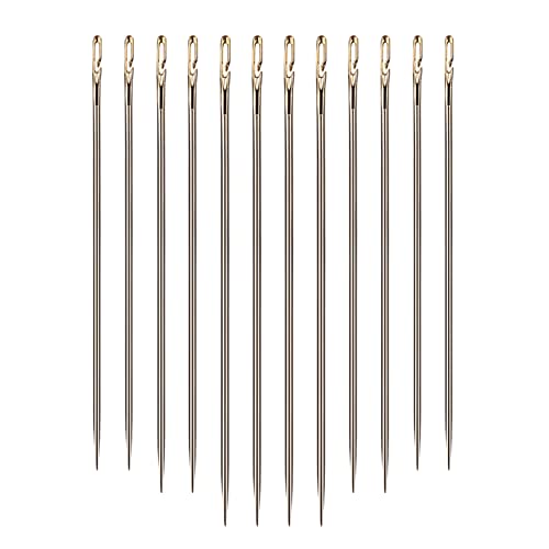 Demiawaking 12 Pezzi Aghi Autofilettanti per Cucire a Mano Aghi da Cucito con Apertura Laterale in Acciaio Inox Aghi per Cucire a Mano Accessori da Cucito per Anziani, Ciechi
