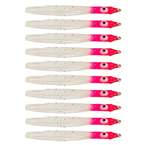 Demiawaking 10 Pezzi Esche Artificiali a Forma di Calamari Esca Luminosa Calamari Esche da Pesca Artificiale Morbide Polpo Luminoso Richiamo di Pesca Attrezzatura da Pesca per Tonno (Rosso, luminoso)