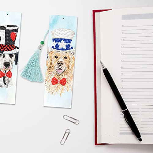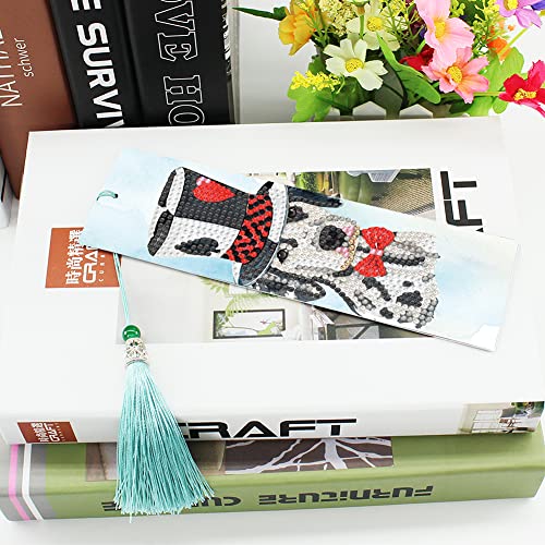 Demiawaking 2 pezzi Segnalibri in Pelle Fatto a Mano DIY Diamant Painting Segnalibro con Nappa Fai da te Marcatore Libro per Donna Uomo Bambini Regalo Compleanno Laurea (Cani 1)