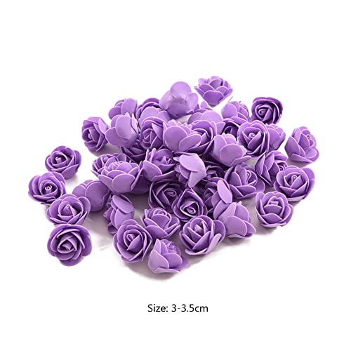 Demiawaking 50 Pezzi Teste di Rose Artificiali in Schiuma 3,5 cm Mini Rose Finte per Decorazioni Fai da Te Rose Artificiali per Decorazioni Matrimonio, Feste, DIY Ghirlanda, Orso di Rose (Viola)
