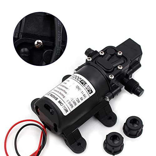 Demiawaking Pompa Acqua DC 12V 6A 72W 6L/min Pompa a Membrana Autodescante ad Alta Pressione Micro Pompa Diaframma per Caravan,Barca,Camper, Lavaggio e Irrigazione del Giardino (Tubo filettato)