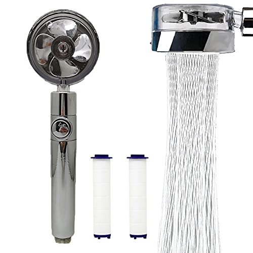 Demiawaking Soffione Doccia Elica Telefono Doccia Alta Pressione Portatile Soffione Doccia Regolabile con Ventola Ugello per Doccia Risparmio Idrico (Soffione + 2pz Filtri, Argento)