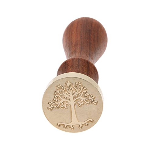 Demiawaking Timbro Sigillo con Testa di Rame Manico in Legno Timbro di Cera DIY Decorazioni per Biglietto d'invito Francobollo Buste (Albero)