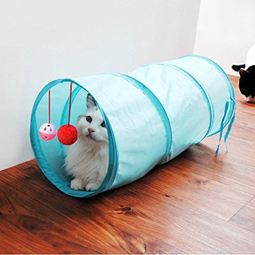 Demiawaking Tunnel di Gatto Domestico Giocattolo Pieghevole con Due Palle Giocattolo Interattivo per Gatto (Blu Chiaro)