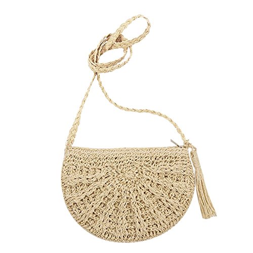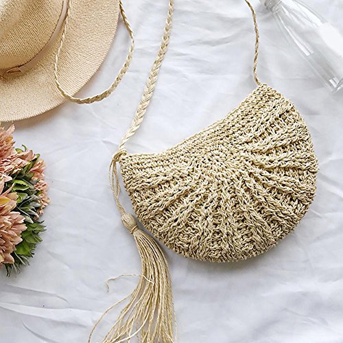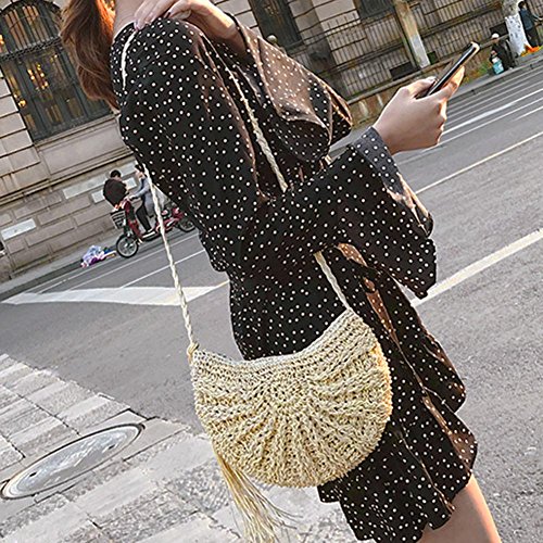 DemiawakingIT Borsa a Tracolla in Paglia Intrecciata Borsa a Spalla Vintage con Nappe Borsa da Spiaggia Paglia Estiva Borsa Crossbody da Donna (Beige)
