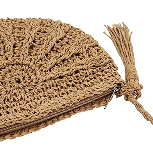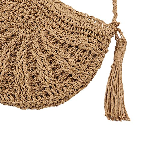 DemiawakingIT Borsa a Tracolla in Paglia Intrecciata Borsa a Spalla Vintage con Nappe Borsa da Spiaggia Paglia Estiva Borsa Crossbody da Donna (Cachi)