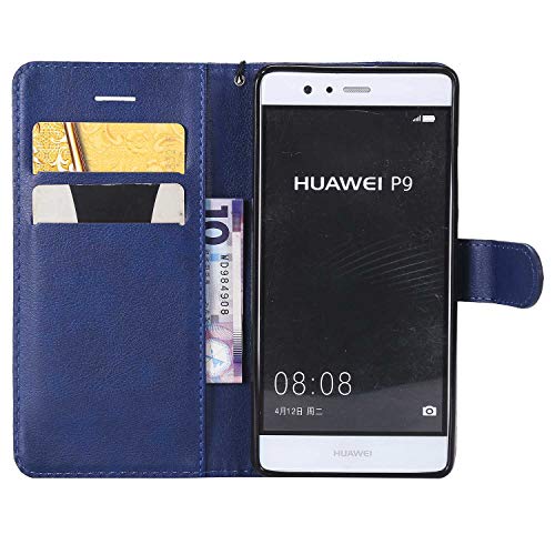 DENDICO Cover Huawei P9, Premium Portafoglio PU Custodia in Pelle, Flip Libro TPU Bumper Caso per Huawei P9 - Blu Navy