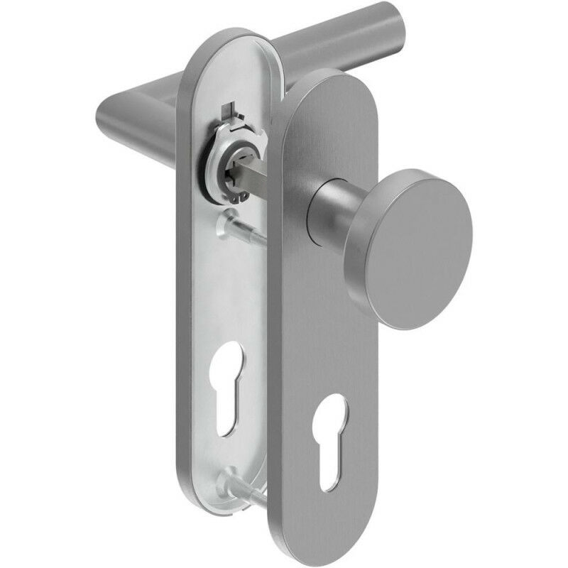 FS set di maniglie a leva BASE-4 8906. acciaio inox - Forma a L - Per porte tagliafuoco e tagliafumo - In acciaio inox. opaco - Con molle di fissaggio - Utilizzabile a destra/sinistra. Non per set intercambiabili - Cuscinetto fisso (preassemblato in fabbrica) - Camme di supporto estese sulle parti inferiori - Sottostruttura in acciaio - Collegamento a vite attraverso la porta - Cuscinetto di scorrimento esente da manutenzione - Per porte interne. Materiale legno. Acciaio - Categoria di utilizzo DIN EN 1634-1: Prove di resistenza al fuoco per porte DIN 18273: Set di maniglie a leva - Chiave di classificazione 4 7 - B1 1 4 O A/B - Materiale di fissaggio incluso.