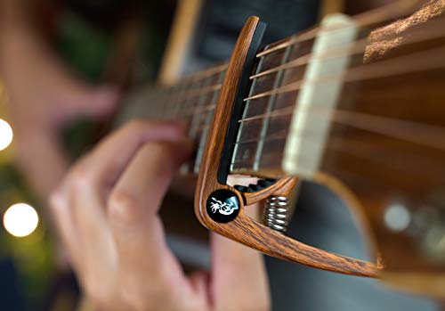 DennisBottero - Capotasto Wood, Resistente adatto ai Principianti, Ideale per Chitarra e Ukulele con 3 Plettri inclusi, Nessun ronzio dei tasti, Qualità Garantita per un Regalo Perfetto