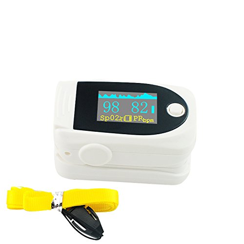 Denshine (TM) - Pulsossimetro da dito e Cardiofrequenzimetro LED Display OLED a Colori a memoria - Ossimetro da dito - Sensore di ossigeno nel sangue e Pulse, Misuratore digitale con istruzioni e cordino, Audio, allarme e impulso sonoro - SPO2 Monitor fingerpulseoximeter pulseoximeter Pulsioxímetro Saturimetro professionale casa uso sportivo