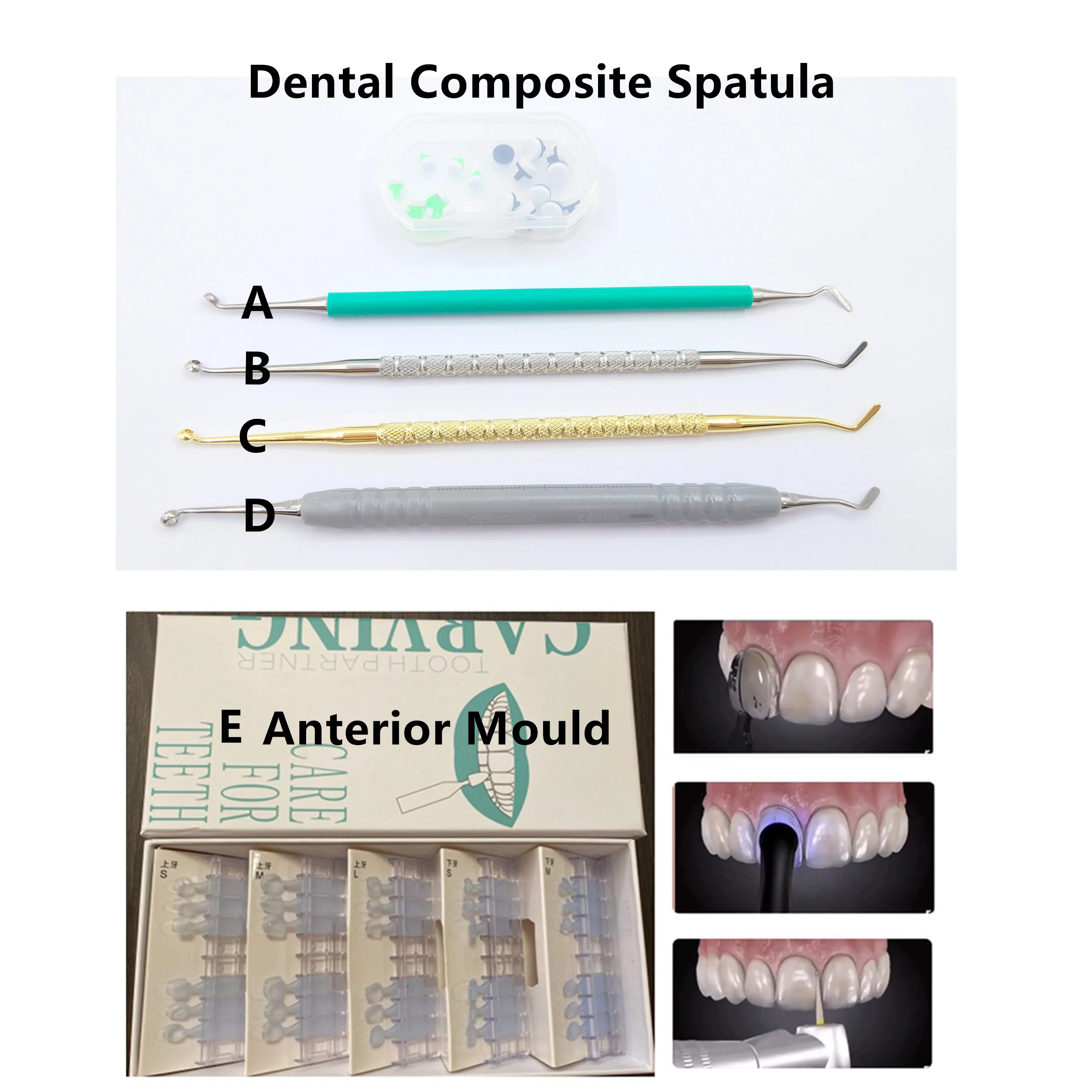 Dental Composite Mould Resin Filling Spatula Light Cure Filler Anterior Front Teeth Fast Quick Handle Foam Pads Optrasculpt