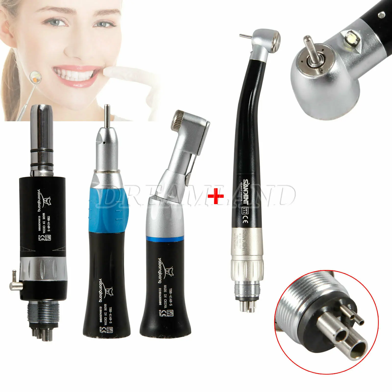 Dental LED E-generator High Speed Handpiece 4Hole Quick Coupler Straight Contra Angle Air Motor fit NSK Black Color