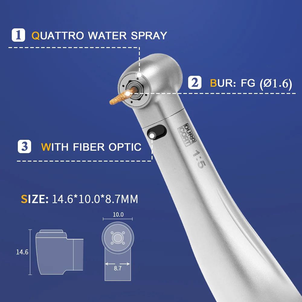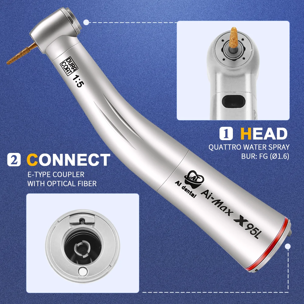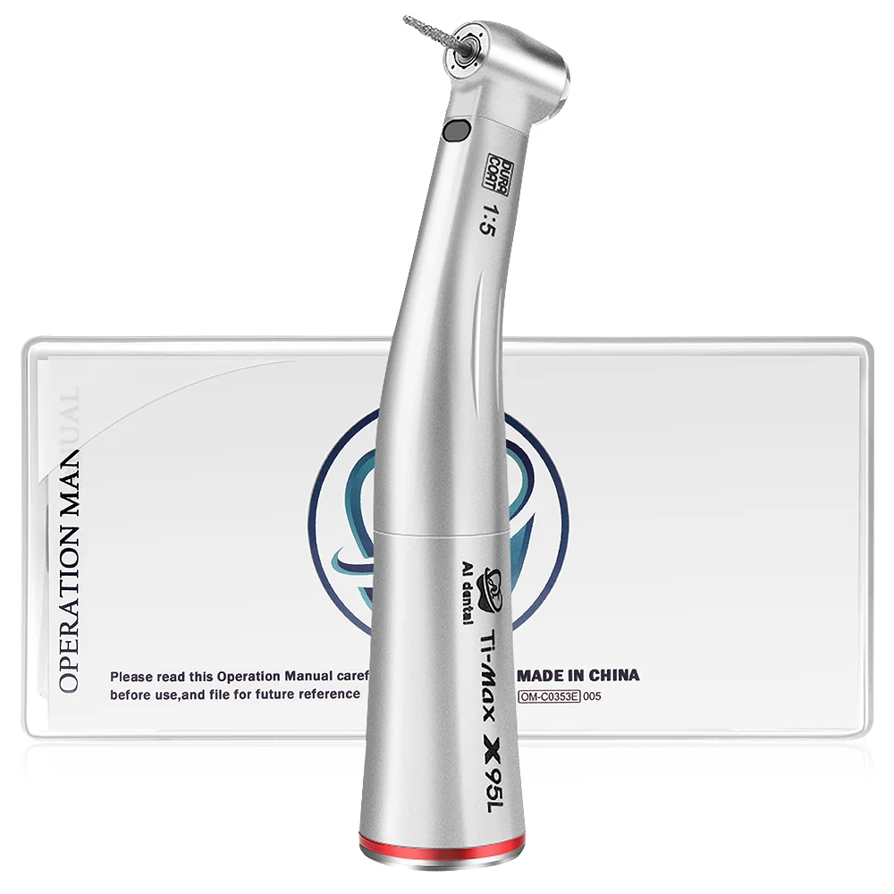 Dental E-type 1:5 contra angle increasing slow speed LED handpiece with Japanese ball bearings and stainless Titanium body
