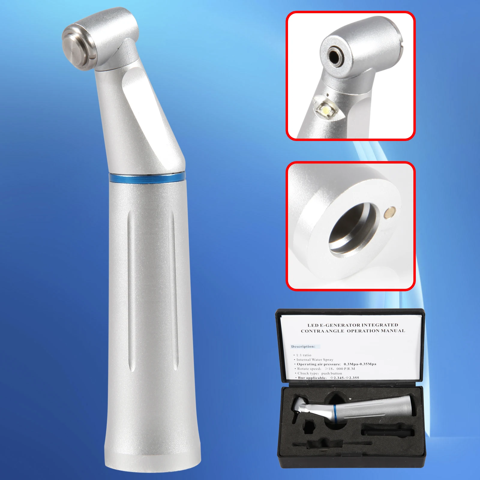 Dental LED Low Speed Contra Angle Handpiece Inner Water Spary 1:1 ratio Push Button THY