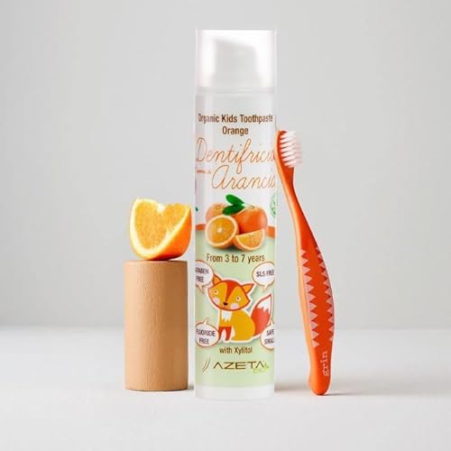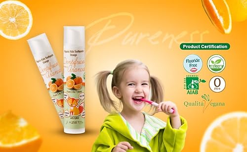 Dentifricio biologico certificato con xilitolo - Linea Bimbi (kids) - confezione da 50 ml al gusto arancia - rafforza gengive e lo smalto - non contiene fluoro