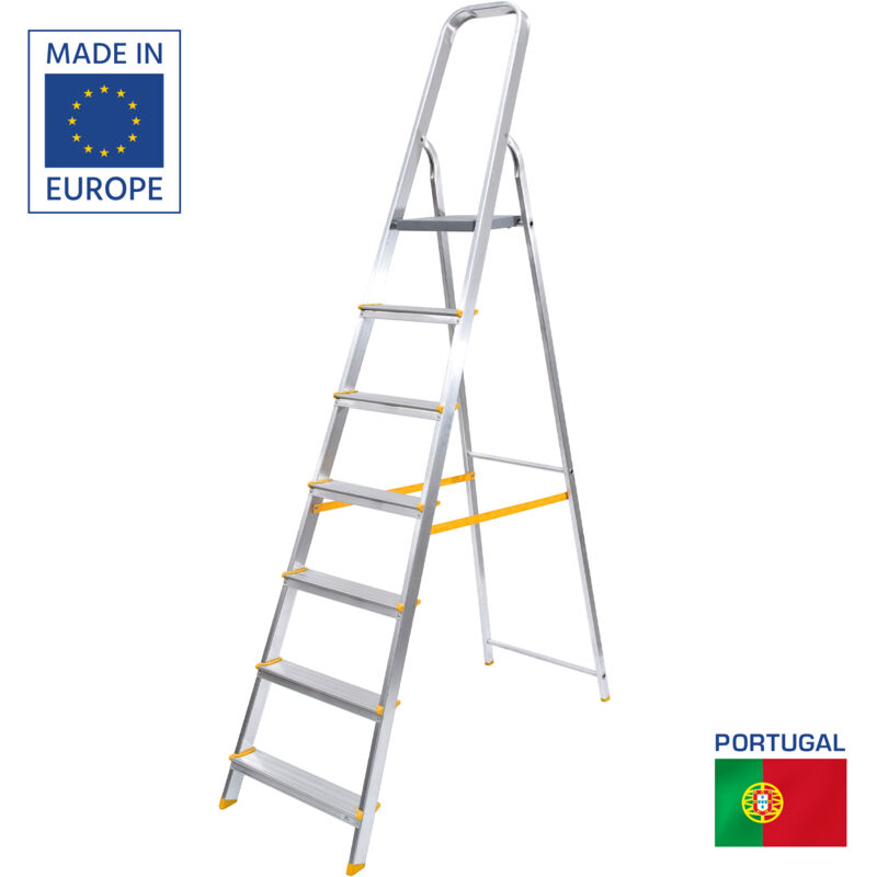 L'escabeau 7 marches DENZEL est conçu pour répondre à tous vos besoins et vous supporter au mieux dans vos travaux de bricolage, rénovation... Sa conception de qualité, étudiée et testée conviendra aussi bien aux particuliers qu'aux professionnels. Maniable et léger Avec un rapport taille / poids exceptionnel, le modèle 7 marches permet d'atteindre des hauteurs significatives tout en restant léger et maniable, n'importe qui peut l'utiliser. Il ne nécessite pas de compétences particulières, et sera notamment pratique pour travailler sur des chantiers: peinture, pose de plaques de plâtre, électricité... Léger mais pas moins résistant Cet escabeau est fabriqué en aluminium, bien qu'il soit léger, ce matériau assure une résistance à toute épreuve et confère une résistance à la charge jusqu'à 150 kg ! Pratique pour pouvoir l'utiliser avec tous vos équipements que ce soit des outils, divers matériaux... Sécurité avant tout ! Le développement de cet escabeau a été largement tourné vers la