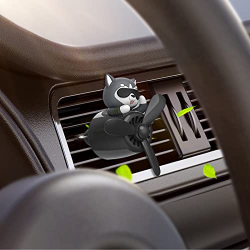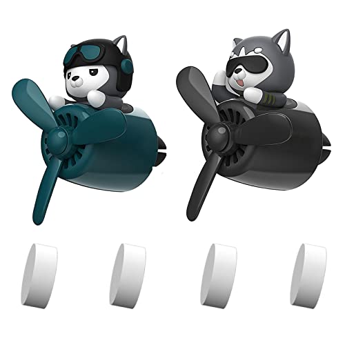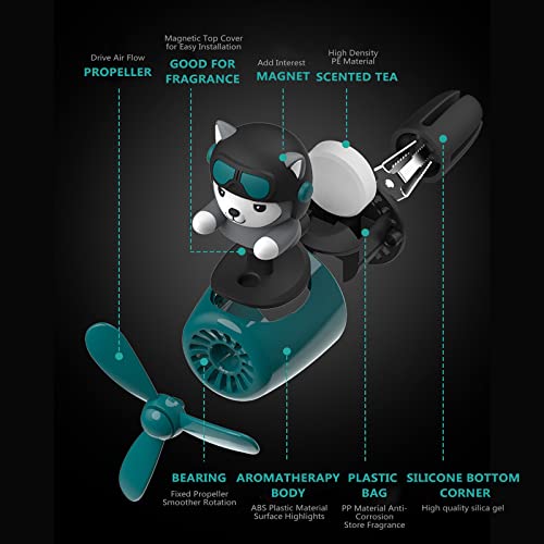 Deodorante per auto pilota con orso nero, diffusore per auto con elica rotante e bocchetta di sfiato, decorazione per aromi, diffusore di profumo per auto, con cuscinetti di ricarica (verdegrigio