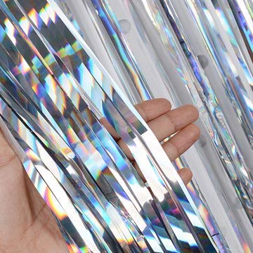 DEOMOR (2m*1m) 4pz Tende a Frange Argento Frangia Decorative Lamina Metallica Orpello Porta Finestra Decorazione Compleanno Feste Natale Matrimonio Festa Argento