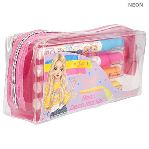 Depesche 3555 TOPModel Decomarker Neon, 4 penne nei colori rosa, arancione, azzurro e giallo, multicolore
