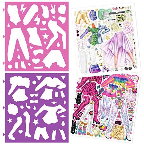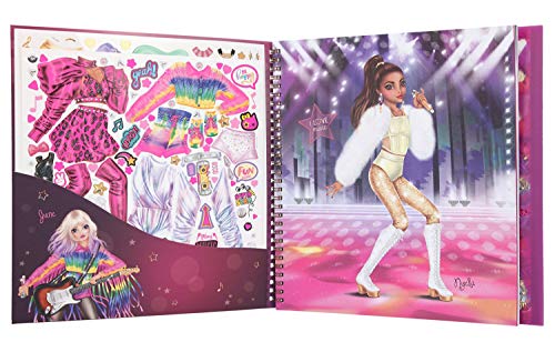 Depesche TopModel 11462-Libro da colorare Popstar, 60 Pagine per Creare Abiti da palcoscenico, con Stencil e Adesivi, Multicolore, 18,5x14,2x13,5 cm, 11462
