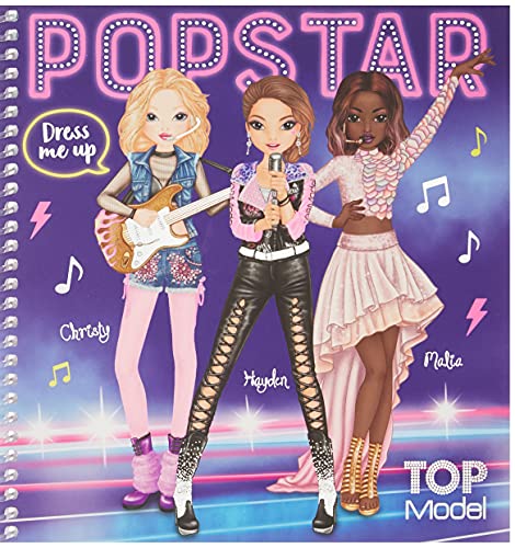 Depesche- TOPModel Dress Me Up Popstar, Libro, Circa 18 x 17,5 cm, con 24 Pagine illustrate e 11 Fogli Adesivi da incollare e Decorare, Multicolore, STK, 11452
