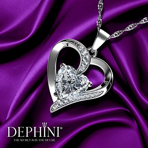 DEPHINI - Collana a forma di cuore bianco - in argento Sterling 925 - con ciondolo in cristallo + zircone cubico - gioiello Love - catenina in argento placcato al rodio di alta qualità da 45,7 cm