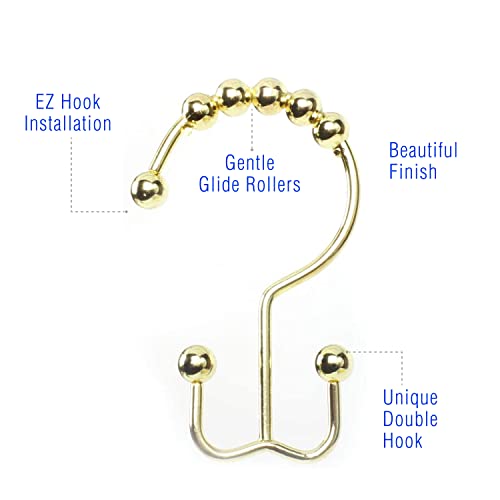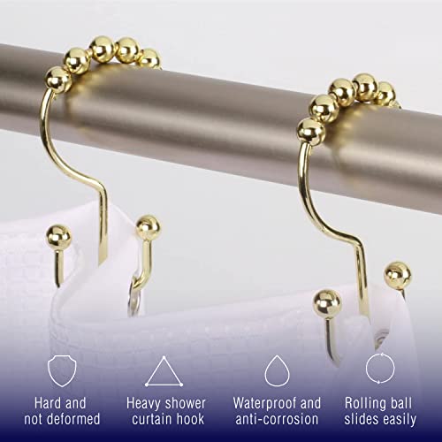2 Lb. Depot Ganci per tende da doccia doppi anelli (finitura decorativa dorata) Gancio metallico in acciaio inossidabile resistente alla ruggine di alta qualità, sfere a rulli in ottone, set di 12