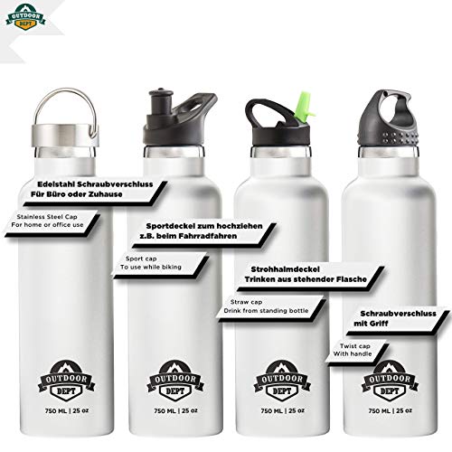 Flessibile: bottiglia d'acqua isolata con 4 coperchi diversi. Sia nobile in ufficio o pratico che bevendo lo sport bottiglia - essere spontaneo. Copertura sportiva, realizzata in metallo, per girare o. Coperchio del collo di paglia. 2. Cannuperli e spazzole per la pulizia gratis per la bottiglia!