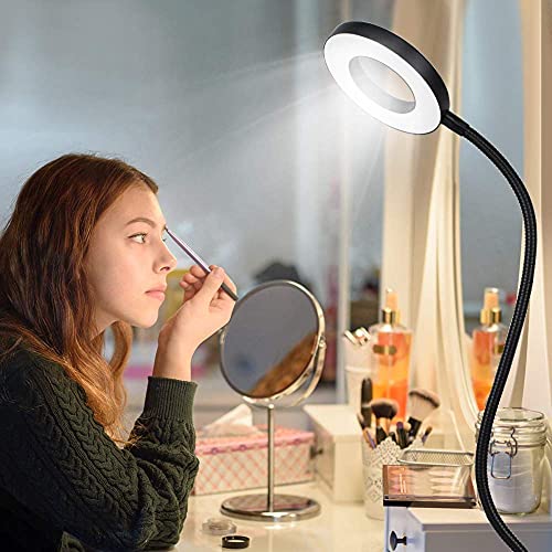 Depuley - Lampada da scrivania USB da 6 W, con morsetto da lettura a letto, luce bianca calda e fredda, collo di cigno, flessibile in metallo nero (adattatore non incluso) [classe energetica A++]