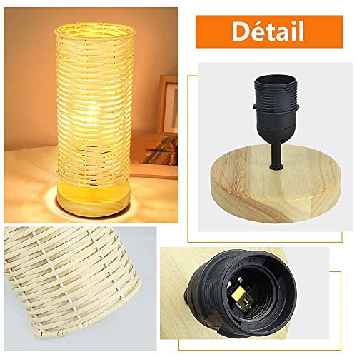 Depuley - Lampada da tavolo, paralume in rattan, lampada da lettura, luce calda E27, design moderno in rattan e gomma, lampada fatta a mano (mouple LED 5 W incluso)